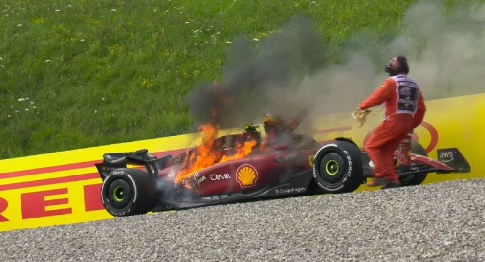 Fuego y drama en el coche de Carlos Sainz, que afortunadamente, salió ileso.