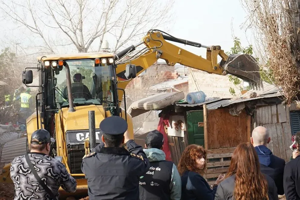 El operativo de demolición contó con la presencia de los ministros Jefe de Gabinete, Juan Luis ‘Pepé’ Ousset y de Seguridad, Matías Nicolini; el fiscal general del Tribunal Superior de Justicia (TSJ), José Gerez; el intendente de la ciudad de Neuquén, Mariano Gaido; y el presidente de la comisión vecinal del barrio Gran Neuquén Norte, Maximiliano Rodríguez.